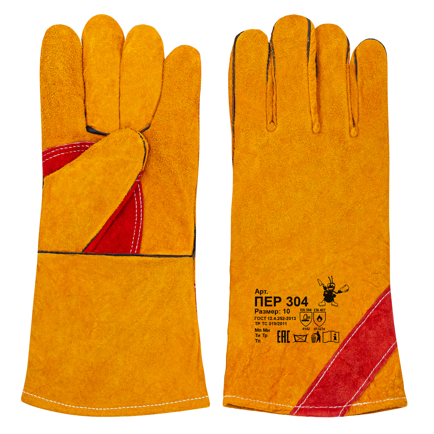 ПЕР 304 Краги желтые из спилка с усиленной ладонью (уп.60 пар)